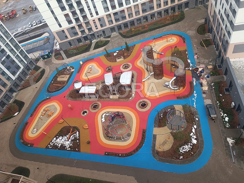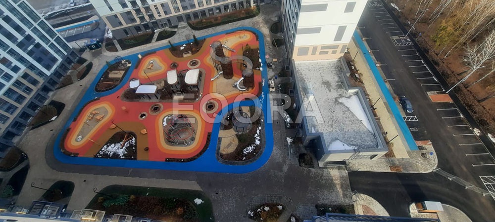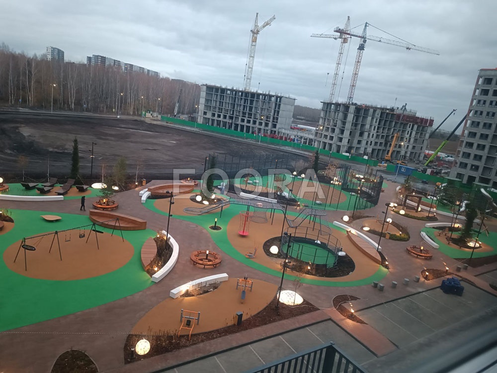 Проект бесшовного покрытия резиновой крошкой ЖК «Мотивы» город Тюмень