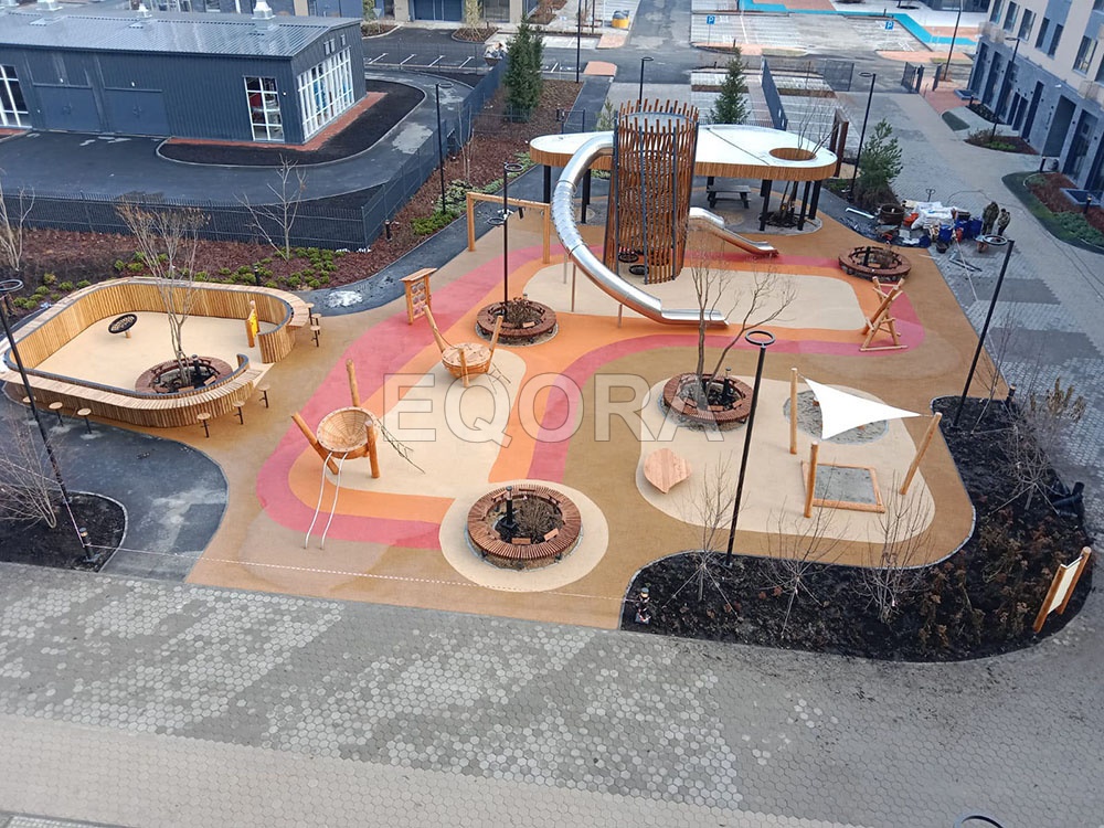 Устройство бесшовного покрытия из каучуковой EPDM крошки EQORA с амортизирующей подложкой толщина от 20 до100 мм