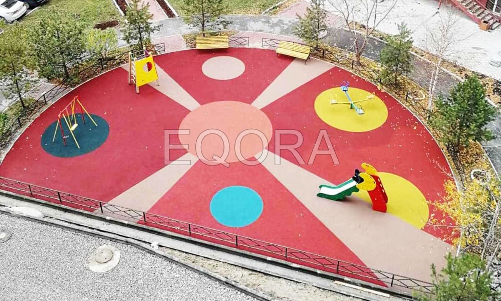 Установка покрытия начинается с подготовки основания, которое должно быть ровным и чистым. После нанесения специального праймера производится укладка резиновой крошки со связующим составом. Полное затвердевание происходит в течение 24-48 часов.